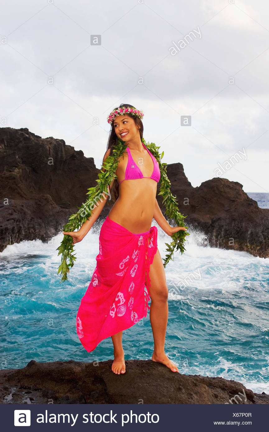Beautiful Young Hawaiian Woman In Bikini Stock Photo Picture And