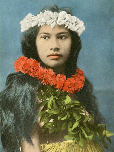 Beautiful Hawaiian Girl With Flower Leis Giclee Print At