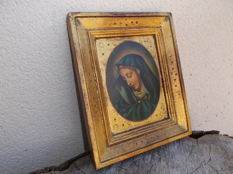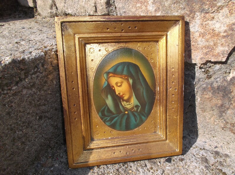Gilded Wooden Frame With Madonna By Carlo Dolci Florentine Frame 1950 With Gilding And Reproduction Madonna Del Dito Italian Vintage