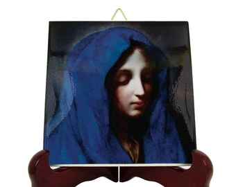 Hand Painted Porcelain Plaque Of Madonna Del Dito After Carlo Dolci Black Forest