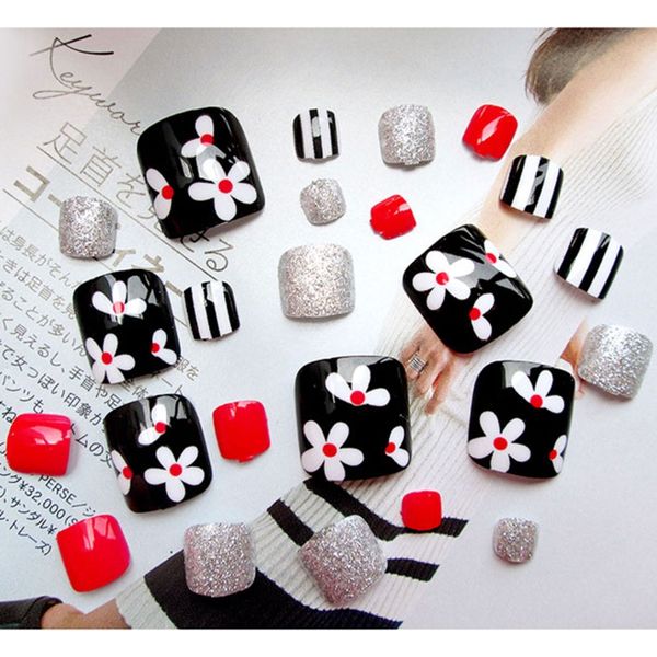 Set Flower White Red Toe Fake Nails Nails Short False Diy Nail Art Summer Holiday Best False Nails Boots False Nails From Nomakeup 3569