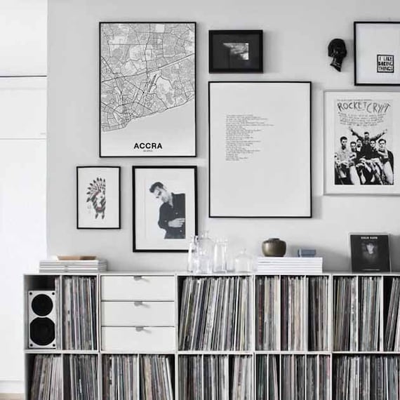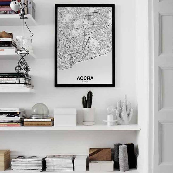 Accra Ghana Map Poster Black White Wall Decor Design Modern Etsy
